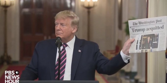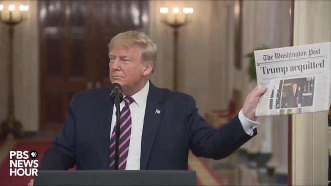 كلمة السر التي كانت السبب في براءة دونالد ترامب من 400 اتهام توجب العزل هي “اللوبي اليهودي” أو “الإيباك”، لهذا صدق المحلل السابق لـ”بي بي سي”، فايز أبو شمالة، وهو يعلن أن مجلس الشيوخ يعلن براءة ترامب، متسائلا: وكيف لا يكون بريئًا من جعل حكام العرب عبيدا لإسرائيل؟ وكيف لا يكون بريئا من أهدى القدس للإسرائيليين؟ وكيف لا يكون بريئا من سرق أموال المستضعفين؟ وكيف لا يكون بريئًا من وقف على حائط المبكي اليهودي يطلب التوبة والغفران والدعم من اليهود المحسنين؟.