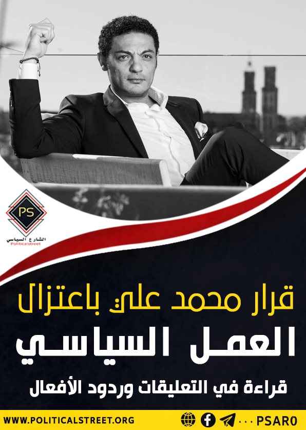 رصدت دراسة لموقع “الشارع السياسي Political Street” تباين ردود الأفعال حيال قرار محمد علي اعتزال العمل السياسي، وذلك في دراسة بعنوان “قرار محمد علي باعتزال العمل السياسي.. قراءة في التعليقات وردود الأفعال”.