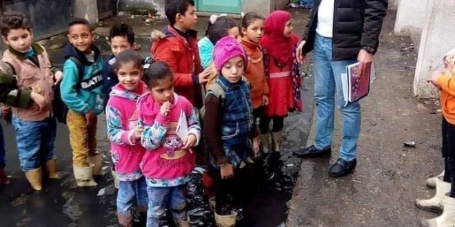 وأثارت صورة قام بنشرها أحد رواد مواقع التواصل الاجتماعي المصغر” تويتر”، تظهر مجموعة من تلاميذ المرحلة الابتدائية وهم يقفون على بركة من مياه المجاري خلال طابور الصباح بإحدى مدارس محافظة كفر الشيخ.