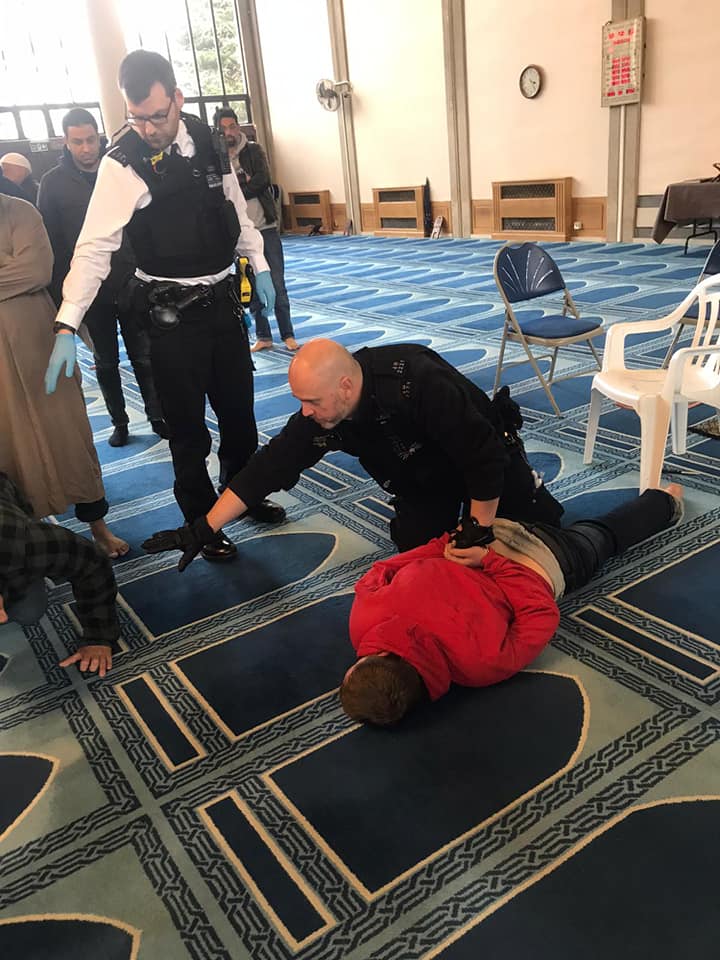واعتقلت السلطات البريطانية شخصا قامًا باقتحام المركز الاسلامي بلندن، ومسجد ريجينت بارك، وإصابة أحد المصلين بجراح نتيجة الطعن أثناء صلاة العصر اليوم الخميس.