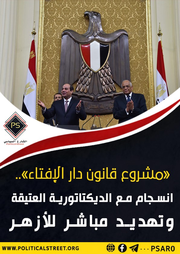 قالت قراءة تحليلية لموقع وصفحة “الشارع السياسي Political Street” إن مشروع قانون الإفتاء يستهدف بالأساس تقليص صلاحيات ونفوذ الأزهر وإضعافه كأكبر مؤسسة إسلامية في مصر والعالم لتمرير الصفقة الأمريكية الملعونة.