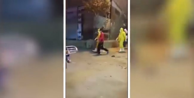 ويظهر مقطع الفيديو اصطحاب فردين من هيئة الإسعاف يرتديان بدلات وكمامات واقية لشخصين يشتبه في إصابتهما بفيروس كورونا الجديد.