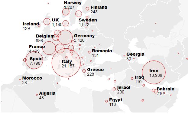 وأضاف “من فضلك لا تقارن 19000 حالة مقدرة هنا (في مصر) وأعتقد أن مصر متأخرة بيوم أو يومين عن إيطاليا. وإيطاليا، مثل كل بلد، لديها حالات أكثر مما يمكن تأكيده”.