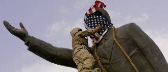 وفي يوم 9 أبريل 2003 أعلنت القوات الأمريكية عن بسط سيطرتها على بغداد والإطاحة بتمثال الرئيس العراقي صدام حسين من أمام ساحة فندق شيراتون وسط بغداد، ووضع العلم الأمريكي على وجه التمثال.