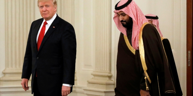 U.S. President Donald Trump and Saudi Deputy Crown Prince and Minister of Defense Mohammed bin Salman enter the State Dining Room of the White House in Washington, U.S., March 14, 2017. REUTERS/Kevin Lamarque