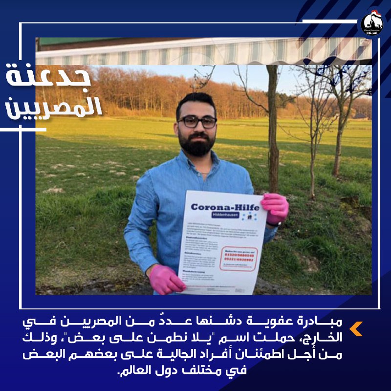 وكتبت جوري: "اسالوا 25يناير وميدان التحرير عن جدعنة المصريين.. الشعب المصري جدع المشكلة انه ملقاش اللي يحنو عليه"، وكتب عادل: "مبادرات لشباب الشرقية لمواجهة فيروس كورونا".