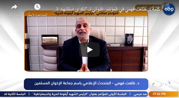 وشددت قيادات الجماعة، خلال المؤتمر الدولي الذي عقد أمس في الذكرى السنوية الأولى لوفاة الرئيس الشهيد، على أنهم على درب الرئيس الشهيد سائرون، وبه مقتدون حتى تتحقق آمال وأهداف الشعب المصري وأهداف ثورة 25 يناير في الحرية والكرامة الإنسانية والدولة المدنية الديمقراطية والدستورية والقانونية.