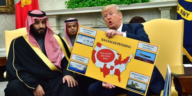 إن سعي الرئيس دونالد ترامب إلى جعل صادرات الولايات المتحدة الدفاعية محركا رئيسيا لنمو فرص العمل قد تجاوز رغبات كل من المملكة العربية السعودية والإمارات العربية المتحدة، وكلاهما يقوده ملوك منتظرون يرون تعزيز صناعاتهم الوطنية في إطار دفع نحو التحديث الاقتصادي. ومع ذلك، فإن كلا البلدين حريص على الحصول على المعدات الأمريكية مهما كان ذلك، وفقا لخبراء، نظرا لتزايد التوترات في المنطقة منذ أن خرجت الولايات المتحدة من الاتفاقية النووية الإيرانية عام ٢٠١٥ قبل عامين.