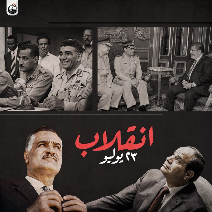 تصدر هاشتاج #انقلاب_23_يوليو موقع التواصل الاجتماعي للتغريدات القصيرة "تويتر" مع مرور 68 عاما على أول انقلاب عسكري جرى في مصر الحديثة في 23 يوليو 1952، جرى خلاله خداع الشعب المصري، بادعاء تحريره من الملكية ليزج به في أتون الاستبداد والقمع والافقار غير المسبوق.