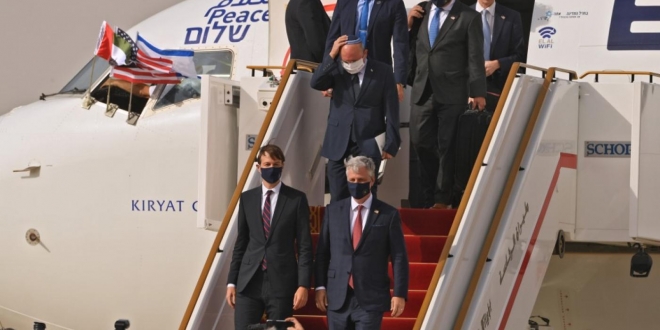 وفي وقت سابق من هذا الأسبوع، سافر جاريد كوشنر، صهر الرئيس الأمريكي وكبير مستشاريه، مع وفد إسرائيلي رفيع المستوى إلى الإمارات العربية المتحدة في أول رحلة ركاب تجارية مباشرة بين البلدين، وهي نجمة داود التي كانت على ذيل الطائرة. وقد اجتازت الرحلة المجال الجوي السعودي، مما يشير على الأقل إلى الموافقة على اتفاق اختراقي توسطت فيه الإمارات العربية المتحدة لتطبيع العلاقات مع إسرائيل.