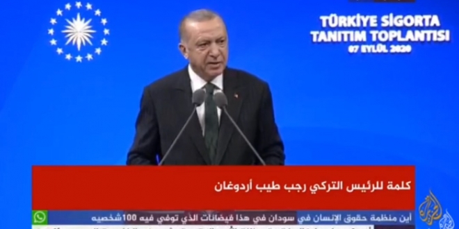 وقال أردوغان في كلمة ألقاها خلال مشاركته في حفل تعريف نظام التأمين الجديد، بالمجمع الرئاسي في العاصمة أنقرة: "لن نسمح لمن يتغذى من الفوضى والأزمات بنهب رزق أمتنا وموارد بلادنا".