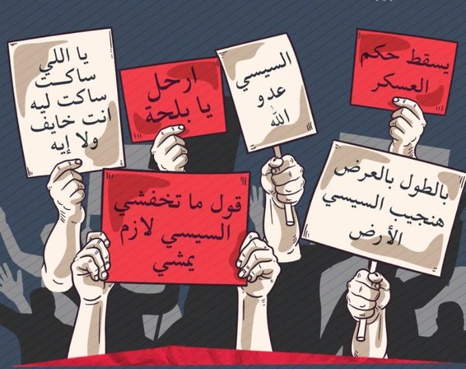 وكتب محمود "@MamoudKhoder"، "عندما قال السفّاح الهمجي السيسي إنني لن أبقى ثانية اذا نزلتوا و طلبتم مني الرحيل كان يقصد الفنانين والضباط و الإعلاميين العاملين لدى المخابرات ولم يكن يقصد الشعب المقهور.. أيها الانقلابي المخبول ليس بالأمن وحده تُبنى الأوطان.. كرامة الإنسان هي المطلوب".