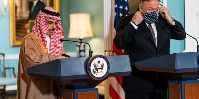 وقال بومبيو، الذي كان يتحدث إلى جانب وزير الخارجية السعودي الأمير فيصل بن فرحان آل سعود في وزارة الخارجية يوم الأربعاء، إنه يأمل أن تحذو المملكة حذو الإمارات العربية المتحدة والبحرين وأن تُطبيع العلاقات الدبلوماسية مع الكيان الصهيوني. مضيفا "نأمل أن تفكر المملكة العربية السعودية في تطبيع علاقاتها أيضا، ونريد أن نشكرهم على المساعدة التي تلقوها في نجاح اتفاقات أبراهام حتى الآن"، معربا عن أمله في أن تشجع الرياض القادة الفلسطينيين أو السلطة الفلسطينية على "العودة إلى الحوار والتفاوض مع الكيان الصهيوني".