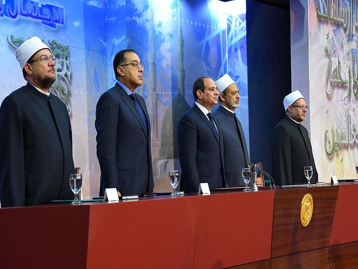 ثم عاد مكررًا ما قاله لرجال الأزهر الشريف دون ذكرهم بقوله: إن المهمة والمسئولية التى يقوم بها رجال الدين لتصحيح المفاهيم الخاطئة ثقيلة، يجب تصويبها لنحمى المجتمع والدولة من مخططات التخريب. زاعمًا أن الدولة لن تألوا جهدًا فى دعم الأمة وتوفير المناخ المناسب فى أدائهم الدور المرجو منهم.