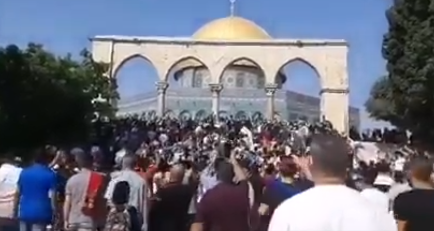 حيث انتفض المصلون من المسجد الأقصى المبارك عقب صلاة الجمعة اليوم مرددين الهتافات المناصرة لرسول الله صلى الله عليه وسلم والمنددة بما تفعله فرنسا من إساءة للنى الكريم.