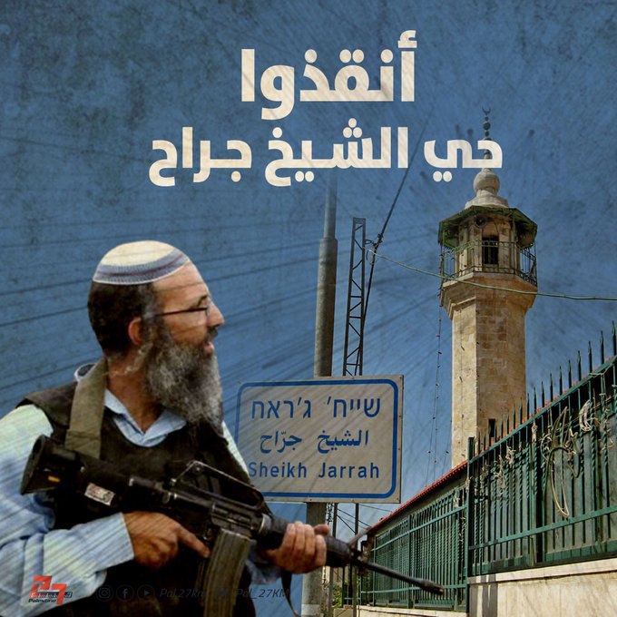 دشن نشطاء هاشتاج (انقذوا حى الشيخ جراح، وذلك بعد قرار سلطة الاحتلال الصهيوني طرد 500 أسرة مقدسية من الحي ومنح بيوتهم للمستوطنين الصهاينة.