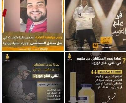 وواصلت حملة "حقهم" الشعبية للتضامن مع المعتقلين و المختفين قسريا مطالبيتها برفع الظلم الواقع عن جميع المعتقلين واستنكرت حرمانهم من حقهم في تلقي لقاح كورونا.
