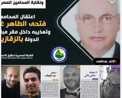 ووثقت الشبكة ما تعرض له فتحي الطاهر غياتي المحامي، عضو هيئة الدفاع عن المعتقلين بالشرقية، والذي يقيم في مركز الإبراهيمية بمحافظة الشرقية من تعذيب داخل فرع الأمن الوطني بالزقازيق لأكثر من 30 ساعة بعد اعتقاله وإخفائه قسريا يوم 18 مايو الجاري دون سند من القانون.