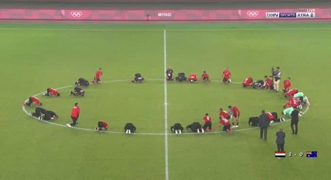 شهدت منصات التواصل الاجتماعي احتفاء بمنتخب مصر الأوليمبي عقب تخطيه عقبة منتخب أستراليا ضمن فعاليات كرة القدم بأوليمبياد طوكيو 2020. الفرحة جاءت مزدوجة بعد فوز الفريق بهدفين دون رد، فضلا عن لقطة رائعة نهاية المبارة بوقوف اللاعبين في دائرة منتصف الملعب والسجود لله شكرا على الفوز والتأهل لدور الثامنية لملاقاة منتخب البرازيل.