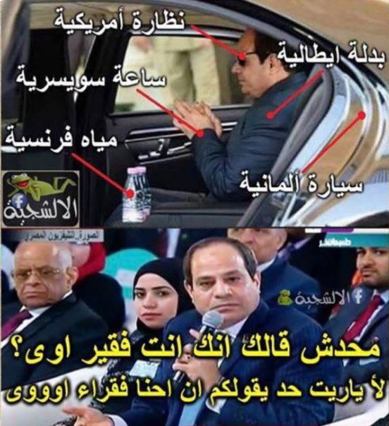 تصدر هاشتاج #ليه_يفقرونا_وهما_يعيشوا مواقع التواصل الاجتماعي بعدما بات اقتصاد مصر يعتمد على الدين والقروض بدلا من الإنتاج والفرص، وهو الحال الذي عبرت عنه صحيفة "ميدل إيست آي" بأن النخبة العسكرية في مصر لم تعد تشعر بأنها ملزمة برعاية المصريين وأن رفع الدعم عن الخبز الذي أعلن عنه السيسي سيضرب 63 مليون مصري ويزيد من معدلات الفقر".