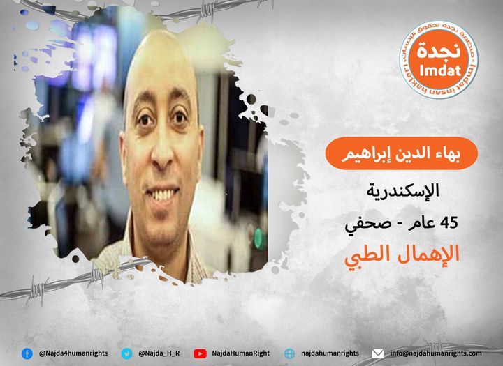 وثقت منظمة "نجدة لحقوق الإنسان" ما يحدث من إهمال طبي للمعتقل الصحفي بهاء الدين إبراهيم نعمة الله، داخل محبسه بسجن استقبال طره، حيث تمنع إدارة السجن دخول الأدوية بجميع أنواعها له مع عدم توفير ما يحتاجه منها.