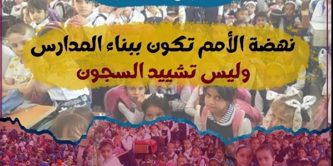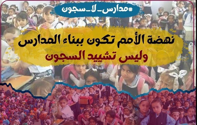 تصدر هاشتاج #مدارس_لا_سجون مواقع التواصل الاجتماعي فيسبوك وتويتر وذلك مع استمرار ظهور اللقطات والمقاطع المصورة التي تظهر تكدس الطلاب في فصول المدارس الحكومية في ظل سلطة الانقلاب العسكري ، ومشاجرات أولياء الأمور على مقاعد الطلاب الأولى، أو لخروج أبنائهم مبكرا وعدم انتظام الدراسة بالشكل الذي اعتاده المصريون قبل أعوام من الفشل المتعدد الجوانب للمنظومة التعليمية في مصر.