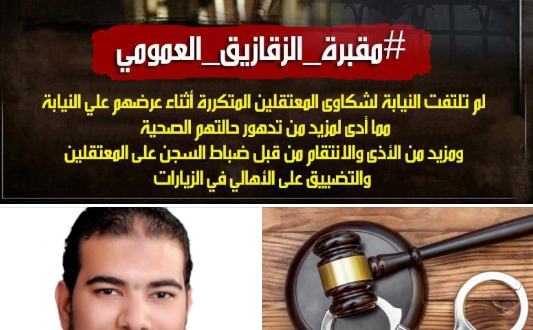 ووثق المركز شكاوى أهالي سجن الزقازيق العمومي؛ بسبب ما يتعرض له ذووهم داخل السجن من تعذيب ممنهج وانتهاكات تحت إشراف مباحث السجن والضابط أسامة العطار وشريف نخنوخ وقوة السجن.