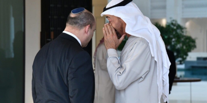 وصف مكتب رئيس وزراء دولة الاحتلال الصهيوني اللقاء الذي جمع نفتالي بينيت بولي عهد أبوظبي محمد بن زايد بالتاريخي وقالت وكالة الأنباء الإماراتية إن المباحثات بين الطرفين تطرقت إلى مسارات التعاون الثنائي بما يساهم في ترسيخ الأمن والاستقرار في المنطقة.