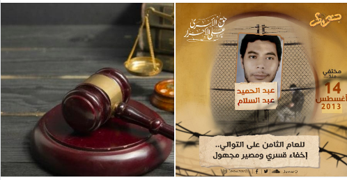 ووثقت المؤسسة استمرار إخفاء "عبدالحميد محمد عبدالسلام" الطالب بكلية الشريعة والقانون منذ أكثر من 8 سنوات، بعد اعتقاله أثناء عملية فض قوات الأمن لإعتصام رابعة العدوية في 14 أغسطس 2013، حيث كان متواجدا بشارع الطيران.