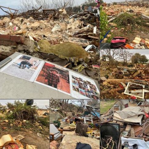 ونقلت "بالصورة، رُكام بيت عائلة صالحية بحي الشيخ جراح ، المُصيبة الأعظم الآن أن تبقى الموحدة وكل ناطق بالضاد بالإئتلاف الإجرامي هذا، بعد أحداث #النقب والقدس! ".