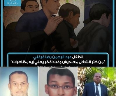 فيما وثقت مؤسسة "بلادي جزيرة الإنسانية" ما يحدث من انتهاكات ضد عبد الرحمن رضا فرغلي، من محافظة السويس، والذي تم اعتقاله مطلع يناير 2020، وهو الذي لم يكمل 16 عاما وقت القبض عليه دون جريمة.