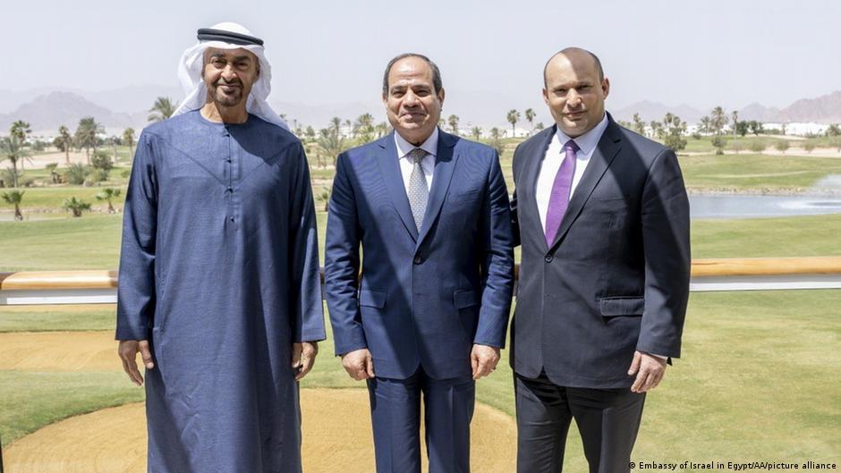 نشر موقع "تايمز أوف إسرائيل" تفاصيل اللقاء الثلاثي الذي جمع رئيس وزراء الاحتلال نفتالي بينيت وعبدالفتاح السيسي ومحمد بن زايد ولي عهد أبوظبي.