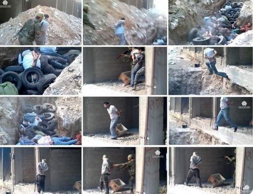 وعرضت المقاطع اقتياد الضحايا وهم معصوبي الأعين، ورميهم في حفرة كبيرة وإطلاق النار عليهم بدم بارد، ثم قاموا بحرق الجثث، والضحايا كلهم من عداد المختفين سوريا.