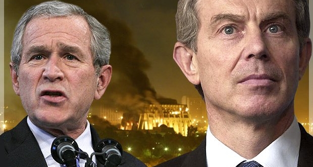 وبحجة امتلاك أسلحة دمار شامل، قرر جورج بوش غزو العراق في 19 مارس 2003، قائدا حكومات العالم الغربية لتدمير واحتلال العراق لإسقاط دولته ونظامه الوطني، محققا إلى الآن انهيارا شاملا اقتصاديا وسياسيا ومجتمعيا.