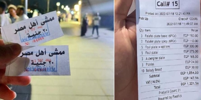 أثارت صورة تذكرة مطبوعة لممشى "أهل مصر" بمبلغ 20 جنيها حالة من الغضب والاحتقان عند نشطاء السوشيال ميديا، بعد قرار عسكر مصر فرض جباية على كل مواطن يرغب في التنزه في "ممشى أهل مصر" والذي كان قد تم افتتاحه قبل عام مجانا بدعوى تطوير كورنيش النيل.