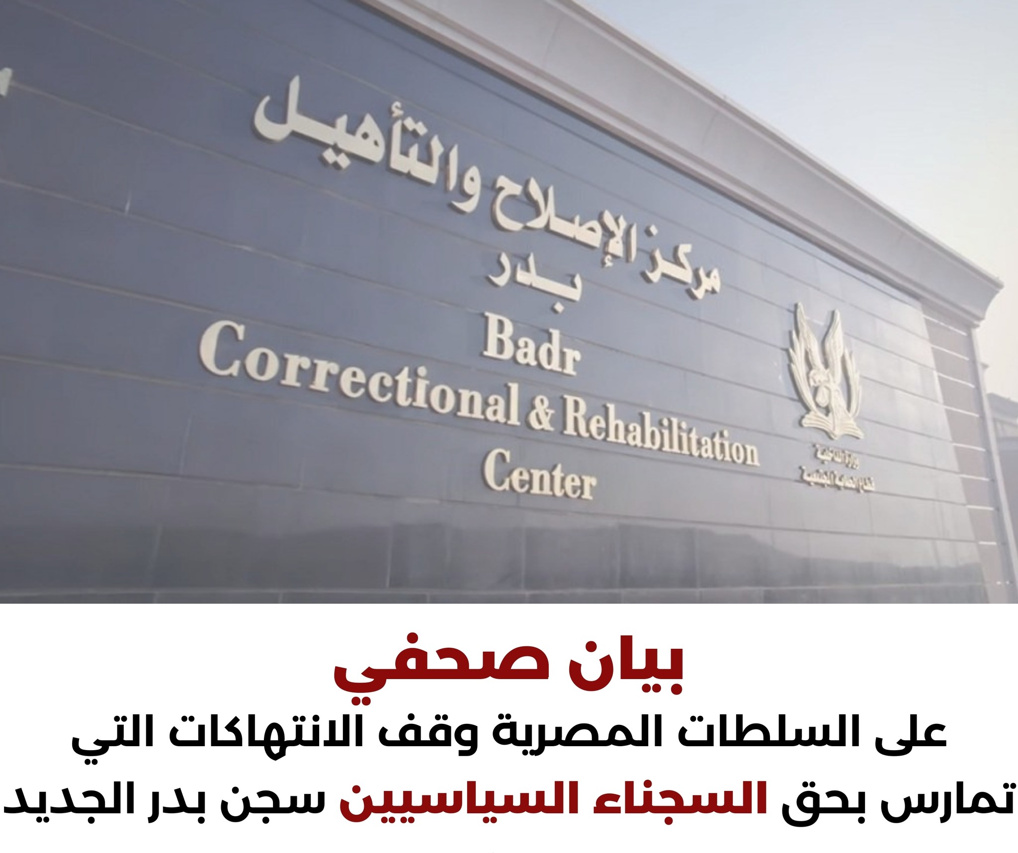 “حتى آخر سجين” تطالب بوقف الانتهاكات لمعتقلي الرأي بسجن “بدر” الجديد