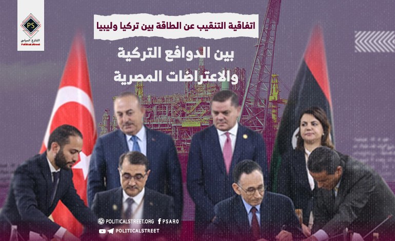 أشارت ورقة بعنوان "اتفاقية التنقيب عن الطاقة بين تركيا وليبيا.. بين الدوافع التركية والاعتراضات المصرية" نشرها موقع الشارع السياسي إلى أن اتفاقية التنقيب التي وقعتها تركيا في 3 أكتوبر 2022، مع الحكومة الليبية المعترف بها دوليا، أخرجت السفيه السيسي مجددا للحديث عن الخط الأحمر المصري في ليبيا والمتمثل في "سرت والجفرة" بحسب تصريحات السيسي وأذرعه ولجانه الإلكترونية.