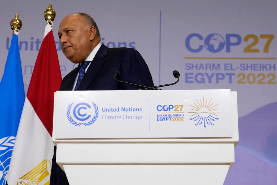 في خطابه الأخير أمام الجلسة العامة، بدأ رئيس COP27 ووزير الخارجية بحكومة السيسي سامح شكري خطابه متراجعا على عقبيه، وقال للمندوبين "نحن عادلون ومتوازنون وشفافون في نهجنا، بعد أن اشتكى الكثير منهم من عدم الوضوح في عملية التفاوض الصعبة".