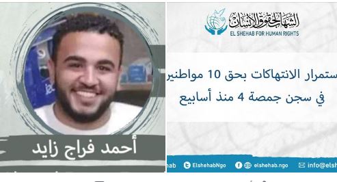 أكد مركز الشهاب لحقوق الإنسان استمرار الانتهاكات ضد 10 محتجزين في سجن جمصة 4 منذ أسابيع دون تحرك من الجهات المعنية لمحاسبة المسئولين عنها وعلى رأسهم رئيس المباحث الجديد للسجن .