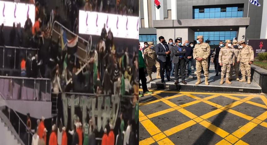 وقالت الصحفية مي عزام @mayazzam_  “سقوط جزء من مدرج صالة حسن مصطفى في ٦ أكتوبر التي تم افتتاحها قبل عامين لاستضافة نهائيات كأس العالم التي نظمتها مصر مطلع عام 2021 ياترى من سيتحمل إهدار المال العام والفساد المالي والإداري في الجمهورية الجديدة؟”.