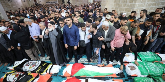 وسط حالة من الغضب الشديد والتأثر البالغ في أنحاء قطاع غزة، شيعت جماهير غفيرة من أبناء الشعب الفلسطيني في قطاع غزة، جثامين 13 شهيدا.