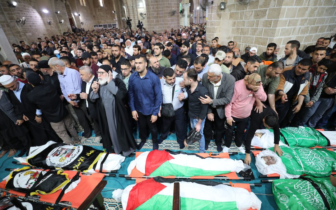 وتجمع الآلاف من المواطنين الفلسطينيين قرب ثلاجات الموتى في مجمع الشفاء الطبي من أجل وداع الشهداء ونقلهم للصلاة عليهم ومن ثم دفنهم، حيث ارتفعت حصيلة الشهداء إلى 13 شهيدا، بينهم 4 أطفال و4 سيدات.