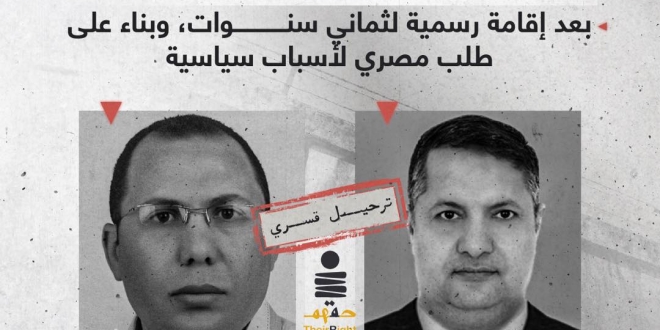 أكدت منظمة ” حقهم ” المعنية بالدفاع عن معتقلي الرأي على استمرار الاختفاء القسري بحق المواطنين السيد العاجز ومحمد العراقي، اللذين جرى ترحيلهما قسرا من دولة البحرين إلى مصر، حيث لم يتم عرضهما على النيابة، ولا يعلم مكان تواجدهما وسط مخاوف على سلامتهما .