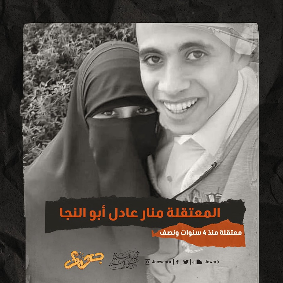 إلى ذلك عرضت مؤسسة جوار الحقوقية لطرف من الانتهاكات المتواصلة بحق المعتقلة "منار عادل عبدالحميد أبو النجا"  وزوجها، حيث يتواصل التنكيل بهما منذ نخو 4 سنوات ونصف، ضمن مسلسل جرائم النظام الانقلابي بحق الأسرة المصرية.