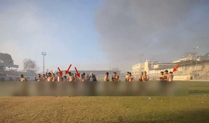 وقال حساب أحداث عالميه @hsmblwy7: “الكيان الصهيوني تخطى حقوق الانسانيه وتخطى المواثيق الدوليه العالميه اتجاه المدنيين،بأعتقال مجموعه من شباب غزه وتجريدهم من ملابسهم في ملعب اليرموك بغزه”.