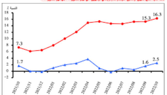 كما زادت أسعار مجموعة السجائر والمشروبات الكحولية بنسبة 87 %، والملابس والأحذية بنسبة ارتفاع بلغت 26.1 %، والسكن والمياه والوقود والكهرباء والغاز بنسبة 11.2 %.