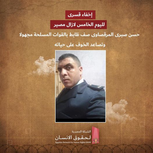 وقد تأكدت الشبكة من اختفاء حسن المرقصاوي صف ضابط القوات المسلحة، ولا توجد أنباء مؤكدة حول تسليمه للقوات المسلحة باعتباره عسكريا حسب اللوائح المتبعة، بينما تتردد بعض الأخبار عن وجوده لدى جهاز المخابرات العسكرية أو سرية النيابات العسكرية؛ وهي الجهة المنوط بها بالتحقيق مع أفراد القوات المسلحة، وتفيد معلومات أخرى بتواجده لدى الأمن الوطني المصري؛ لكن المعلومة المؤكدة تشير إلى أنه مختف لليوم السادس ولا يعلم أحد عنه شيئا حتى الآن، مع تزايد المخاوف على حياته ومصيره.
