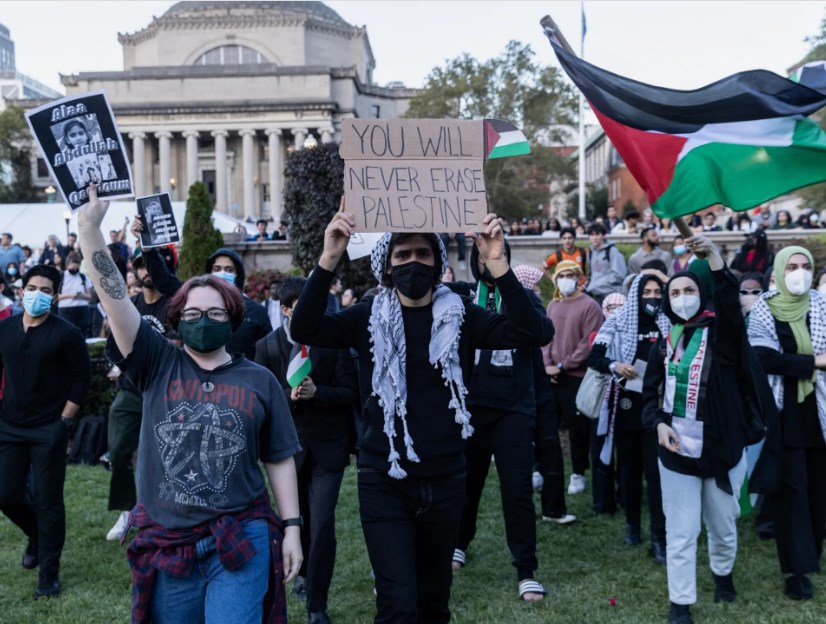 تضامن عدد من نشطاء ورواد موقع التواصل الاجتماعي مع التظاهرات المستمرة التي انطلقت في عدد من الجامعات الأمريكية تضامنا مع غزة.
