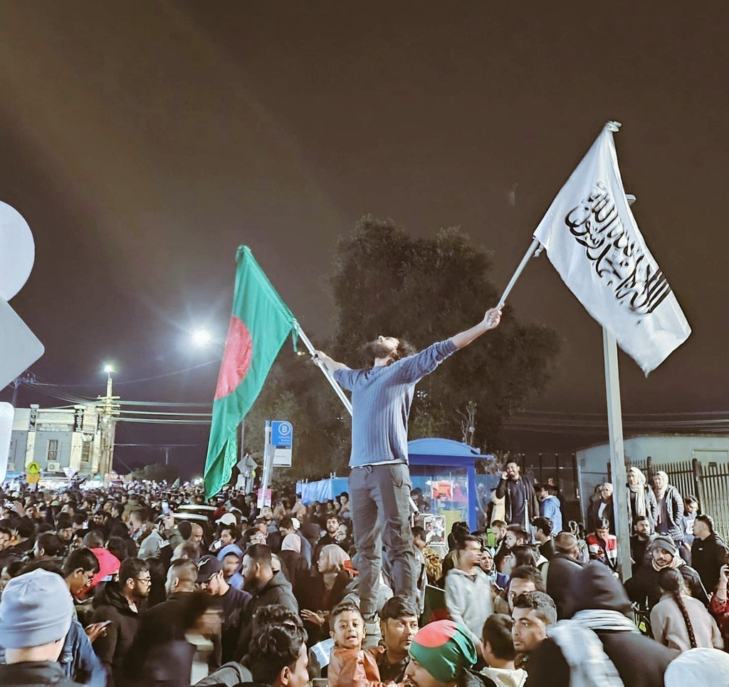 وأضاف “الشيخة حسينة واجد التي تحكم بنجلادش بقبضة حديدية والتي أعدمت أبرز خصومها بدءا بقائد الجماعة الإسلامية (المعتدل للاخوان المسلمين في بنجلادش)، والتي حاولت استخدام القوة الغاشمة مع المتظاهرين على مدى أكثر من شهر، لم تستطع الصمود في مواجهة الغضب الشعبي الذي اقتحم مكتبها ففرت إلى حكومة معادية للمسلمين وهي الحكومة الهندية المتطرفة”.