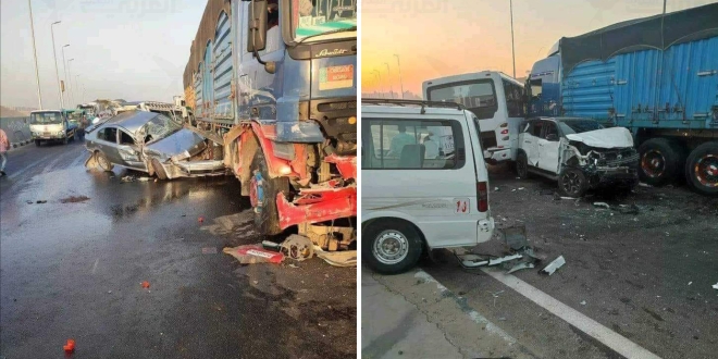 26 مصابا وتدمير 40 سيارة بحادث على دائري الجيزة بالرماية